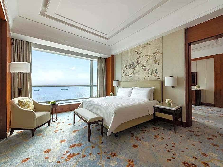 This twin room features a balcony with stunning views of Bohai Bay, a sofa, air conditioning, and premium Shangri-La toiletries.